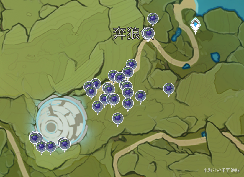 勾勾果僅在奔狼領區域有分佈。建議使用角色七七或可莉探索,這兩位角色的小地圖上會顯示小手圖標,協助你定位勾勾果的具體位置。