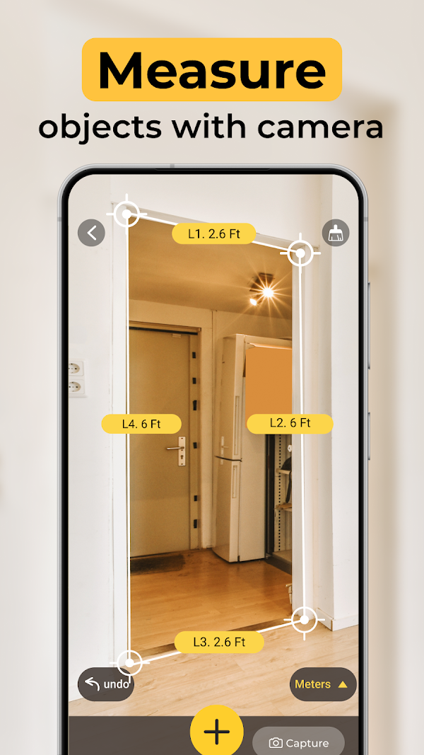Forget about traditional measuring tapes! With our advanced Measuring Tape By Camera feature, your smartphone becomes a reliable and easy-to-use tape measure. Point your camera, select your points, and watch as the software calculates distances, areas, and more. This feature simplifies tasks like furniture fitting and room layout adjustments.