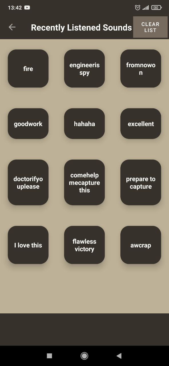 With the TF2 soundboard app, you can easily access over 100 iconic sound clips from the game's beloved characters, including taunts, battle cries, and other memorable phrases. No more searching the internet for sound effects or struggling to remember the perfect line to say in the heat of battle. With this app, all of the best TF2 sounds are just a click away.