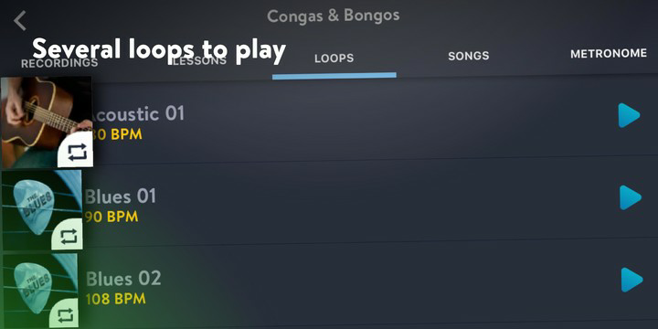 CONGAS & BONGOS lets you try the true percussion experience! A free, fun, user-friendly app! Download it now and enjoy! How does CONGAS & BONGOS work?The app transforms your phone/tablet screen into a lifelike simulation of a percussion kit. For instant playback, all you need do is tap on the drum pads. Not a percussionist yet?CONGAS & BONGOS comes with 10 video tutorials to help you learn, as well as 25 loops in a variety styles to jam along with!No room in your place for a percussion kit?CONGAS & BONGOS is perfect for practising without bugging the neighbours or taking up too much space. Using the app is simplicity itself, play anywhere and put your skills to the test! Check out the CONGAS & BONGOS specs:- Multitouch- 10 drum pads- Studio-quality sound- 10 rhythm samples with tutorials - 25 loops to jam along with- Recording mode- Export your recordings to MP3 - Works with all screen resolutions - Phones e Tablets (HD Images) - Free app The app is free but you can remove the ads and get the premium version by purchasing a license. Have a bash and a blast with the best and most comprehensive percussion app on Google Play! Perfect for drummers, percussionists, professional musicians, amateurs or beginners.Touch & Play!