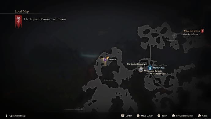 Severian is found west of Martha's Rest in the Rosaria region, just north of Sorrowise. You must complete 'Fire and Ice' before Severian spawns on the map, meaning you unfortunately can't get Electrum right after receiving the Drakeslayer's Belt blueprint - but its still a good belt to equip at this point!