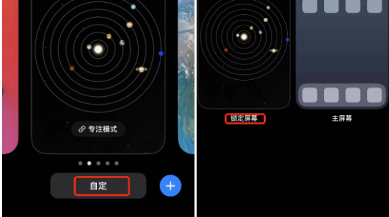 1、在锁屏页面长按屏幕,点击【自定】—【锁定屏幕】;
