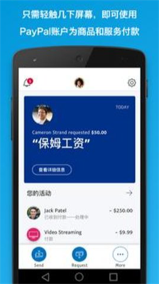 无论是支付保姆工资,还是向发型师付款,只要收款人是PayPal用户,您就可以通过我们改进的移动支付应用轻松为商品和服务付款。此外,您还可以使用查看账户活动等更多功能。